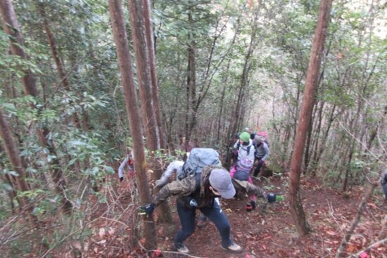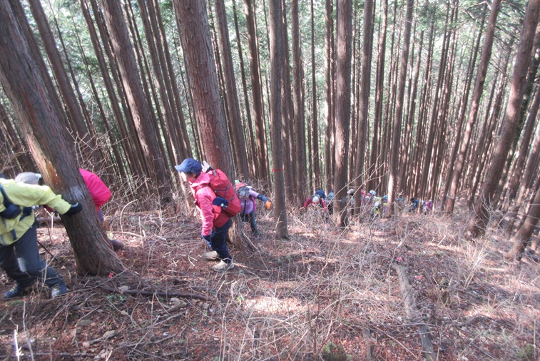 みなさん近くの木をつかんだりしながら登っていきます