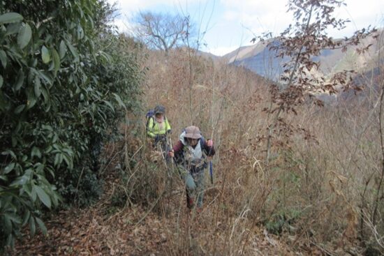 まだ寒いのでヤブが少なめなのでなんとか登っていきます
