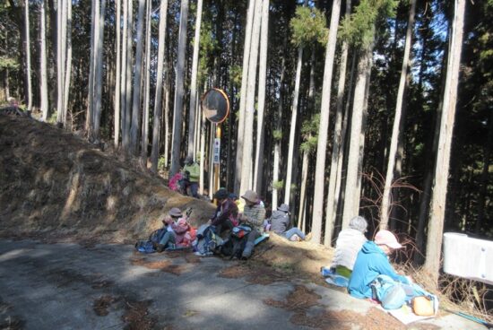 林道で昼食