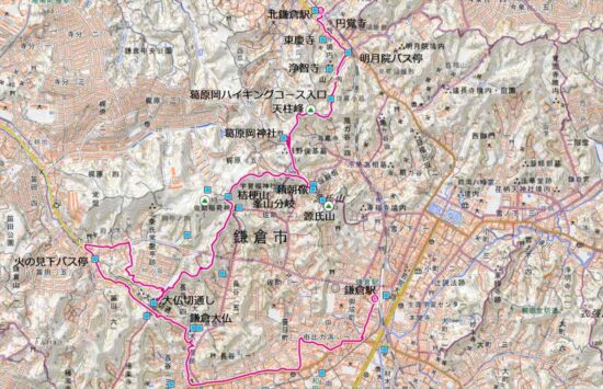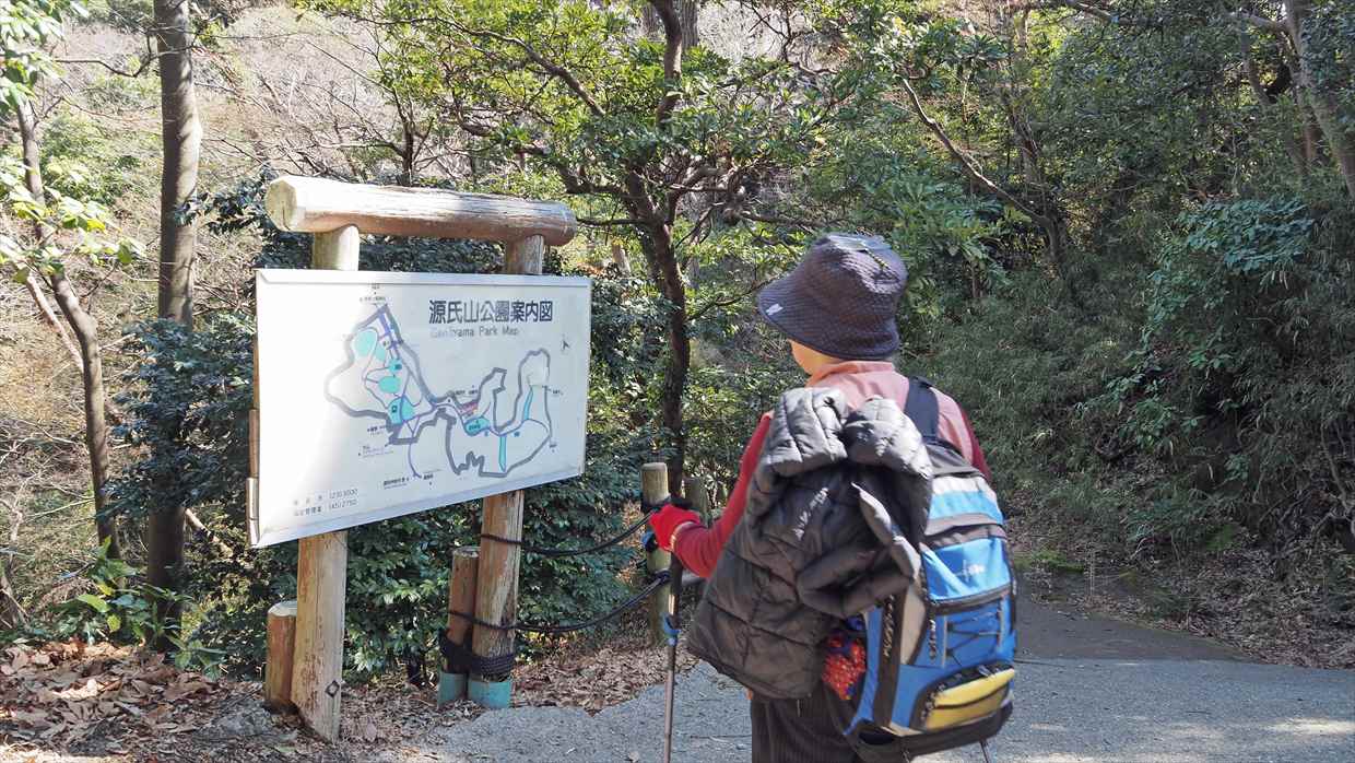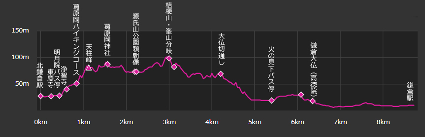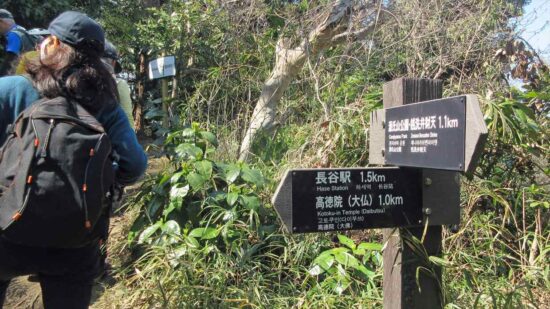 11:09→11:18源氏山公園頼朝像(昼食)12:04→裏大仏ハイキングコース→13:48鎌倉大仏(高徳院)→14:21鎌倉駅
