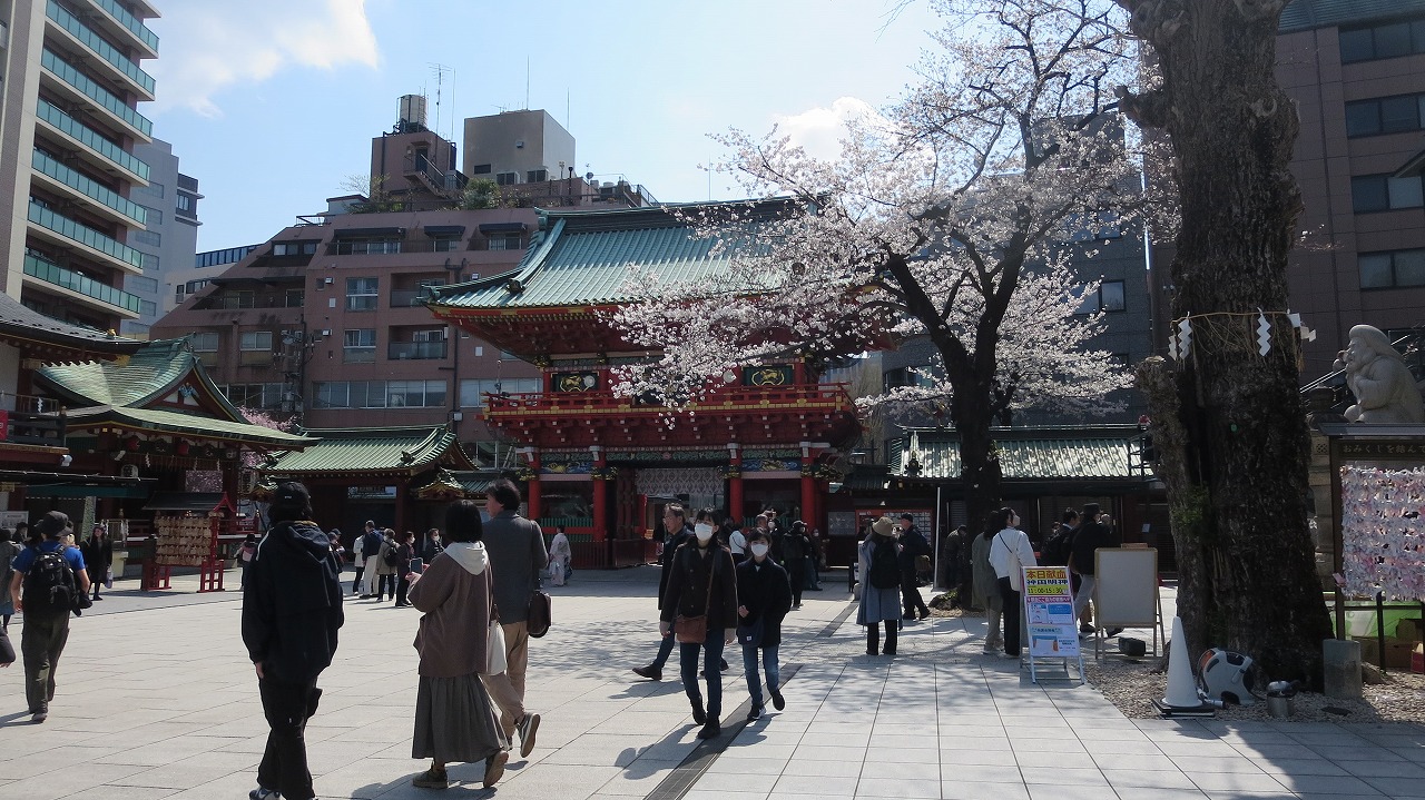 神田明神の桜も満開 お詣りも厳粛にされていた