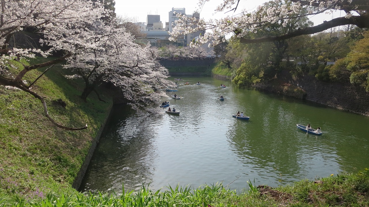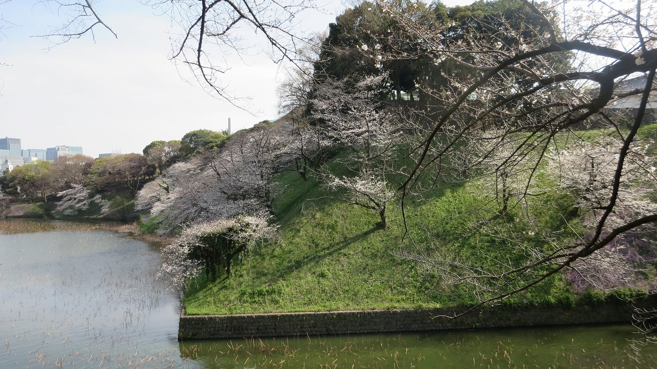 お濠に到着 お濠と満開のさくら