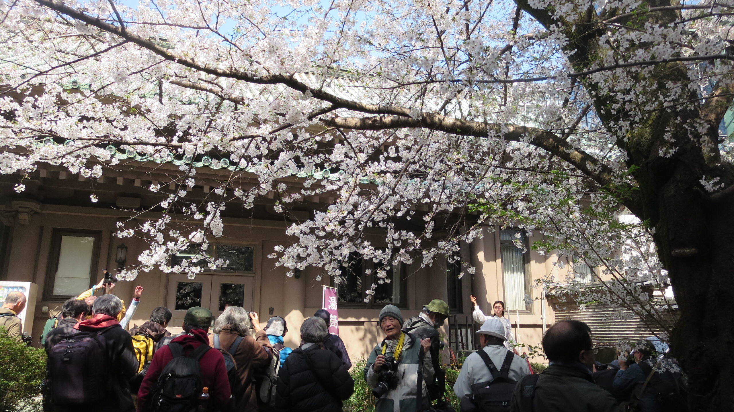 湯島聖堂の桜も満開 撮影会がおこなわれていました(右奥にモデル)