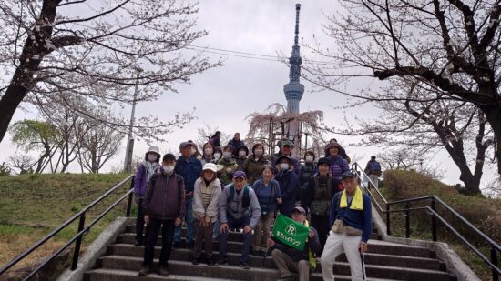 予定日は雨予報のため翌日に変更した。朝の内は曇り、やがて陽が顔を出してきて空気は一変、暖かくなり桜も一斉に満開となった? 前日の雨もあってか花見待ちの人々も一斉に花見へ繰り出した感がありました。隅田川、浅草寺、上野公園、武道館や靖国神社など旧江戸城周辺の他にまだまだ沢山の 桜の名所 があるでしょう。またその地を守る方々もいるでしょう。その様な方々に感謝をしながらの楽しい一日をありがとうございました。山行を支えてくださったリーダー、協力者の皆様ありがとうございました。参加者の皆様ありがとうございました。