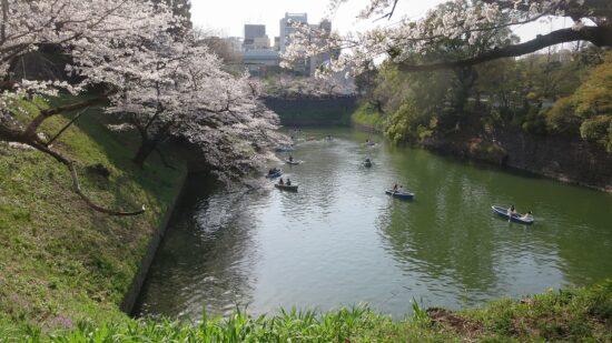 お濠に ゆったり のんびりボートを浮かべて このノンビリ感は羨ましい