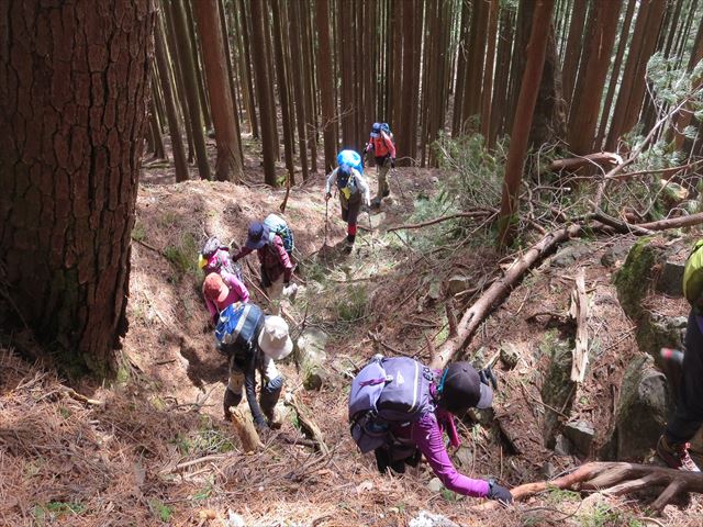 1日目の「外山」を降りた頃にポツポツきたが、それ以上は降らず 少々の急登を楽しめた。