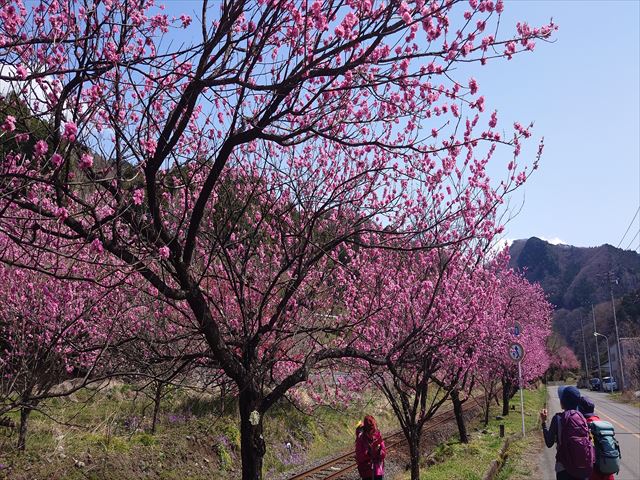 神戸駅の花桃はドンピシャのピークと暖かな春の日差しを浴びて最高に楽しめた お二人の協力者と皆さんのご協力を得て楽しい山行を無事に終えられました ありがとうございました。佐々木 保