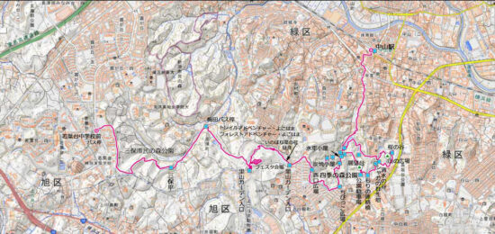 JR横浜線中山駅9:34→9:55四季の森公園北口(リーダー挨拶)→展望広場