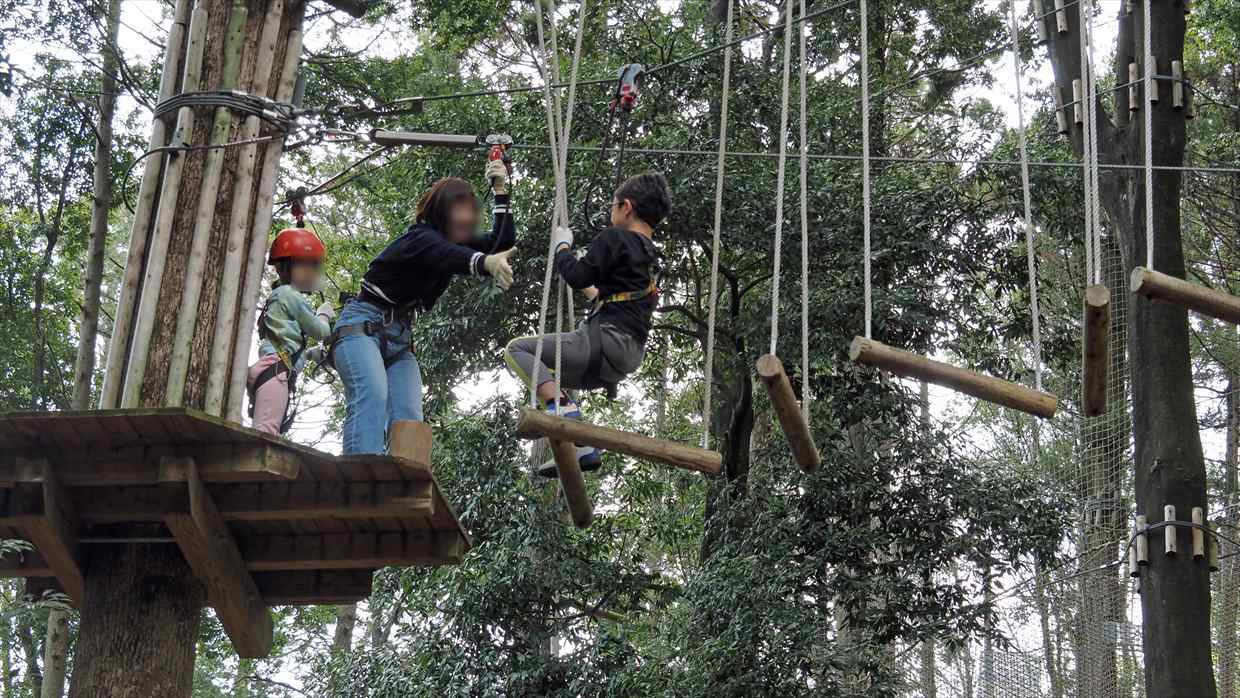 2019年に里山ガーデンの入口に通年で営業する「フォレストアドベンチャー・よこはま」がオープンしました。自然の木々に張り巡らされたネットを渡ったりぶら下がったりできるコースが3種類用意されています。