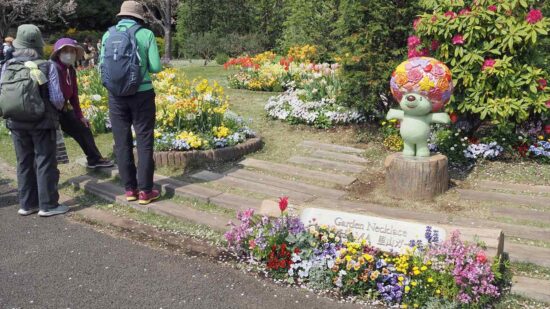 里山ガーデン正面入口広場のマスコットキャラクター(ガーデンベア)