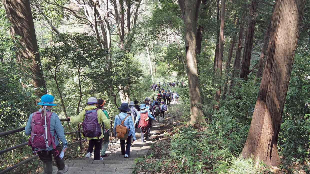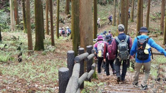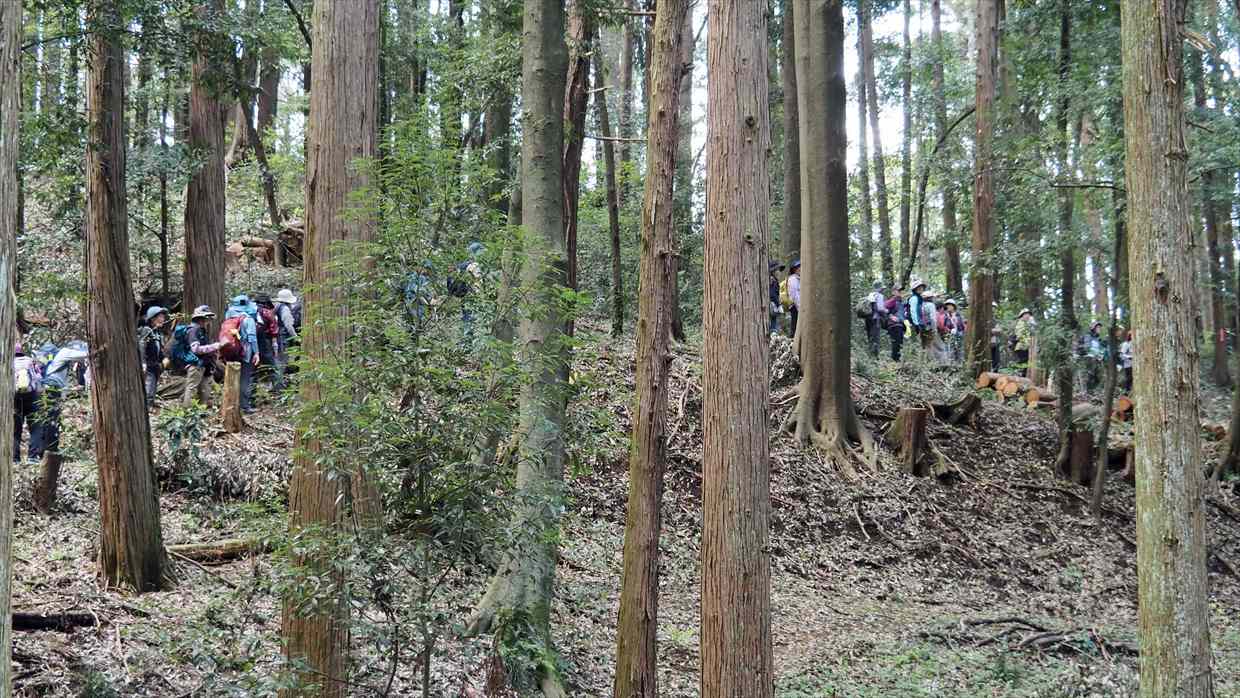 里山の風情が残る路を移動して三保市民の森へ、杉やヒノキの林の尾根道 下るとシダの生い茂る谷 地形の変化を楽しめる森です。