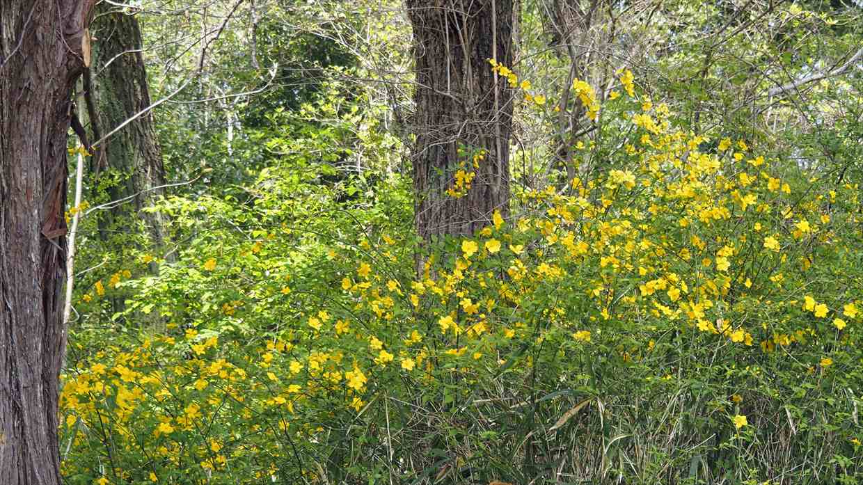 淡い黄色い花が咲いていた ウコン(鬱金)と銘板に書かれていた。