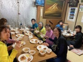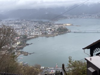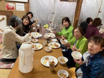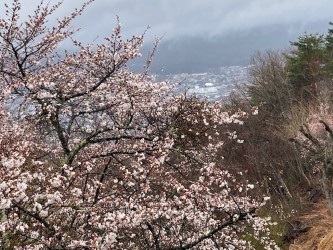 山荘着後、荷物を置いて山頂をピストンするが取り付きから山頂まで階段に整備されていた。山荘は阪急ツアーの団体28名のあとに「食事は2回に分けて団体ごとでした。」トンカツ、おでん、ほうとう鍋等とても美味しかった!13日は朝から雨、河口湖駅に下山したが新倉山コースは満開の桜、健脚コースが歩け充分楽しめたので満足の山行でした。協力者、参加の皆様の協力で安全で楽しい山行が出来ました。有難うございました。お疲れ様でした。 佐野 満喜子