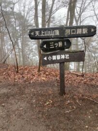 山荘8:00 → 木無山 → 霜山 → 天上山 → 河口湖駅11:25