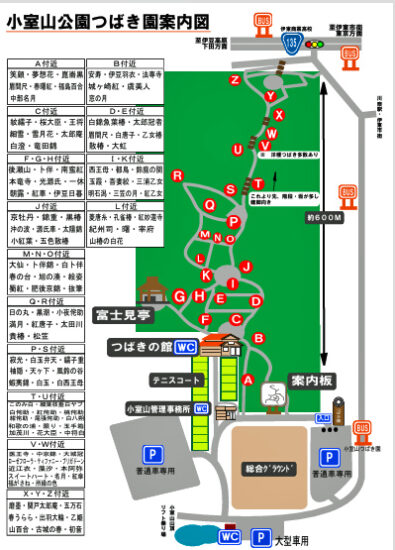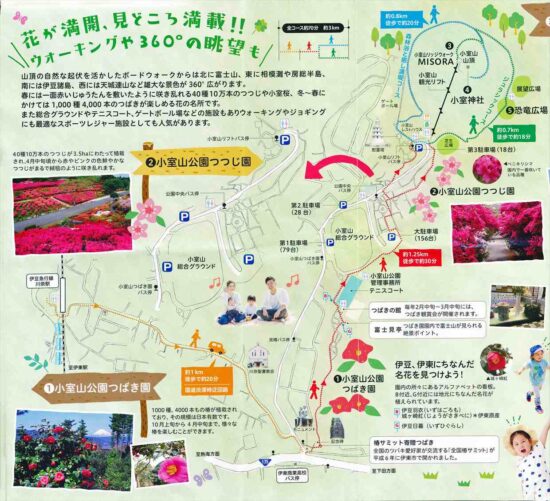 小室山公園の椿は日本有数の種類豊富さを誇ります。公園内にある「小室山つばき園」には約1万5000平方メートルの広さに1000種4000本の椿が植えられています。