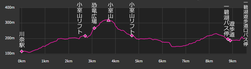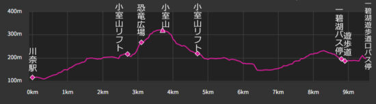 伊豆急川奈駅10:20→10:50小室山公園→11:15恐竜広場11:23→