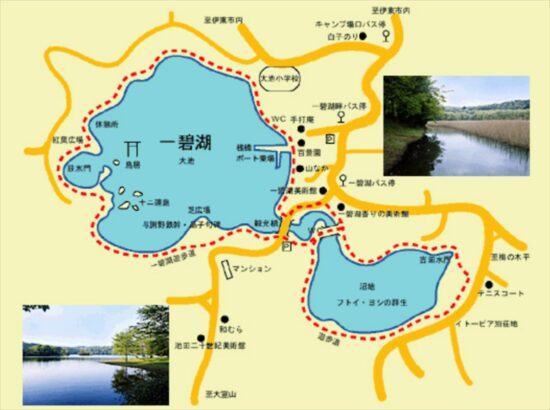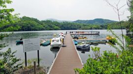 一碧湖は約10万年前の噴火でできた火山湖です。日本百景にも選出されており多くの方々が訪れる湖です。四季折々に色鮮やかな表情をみせる周辺の自然を一碧湖面は優雅に映しだします。特に春の山桜や紅葉シーズンはおすすめです。また1960年に皇太子明仁親王が日本に初めてブルーギルを放流した湖としても有名です。現在でもバス釣りヘラブナ釣りをお楽しみ頂けます。湖畔沿いには明治~昭和と活躍された歌人、与謝野鉄幹・晶子夫妻の歌碑もご覧いただけます。「伊豆の瞳」と称される一碧湖はボート遊びやカヤックをはじめ様々なアクティビティをお楽しみいただける観光地となっております。