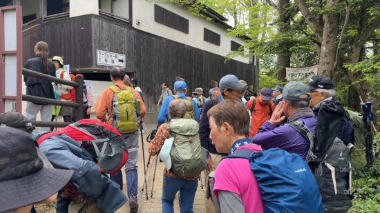 5班の人はしんがりです。高尾山びわ滝コースの入り口でここから歩きます。