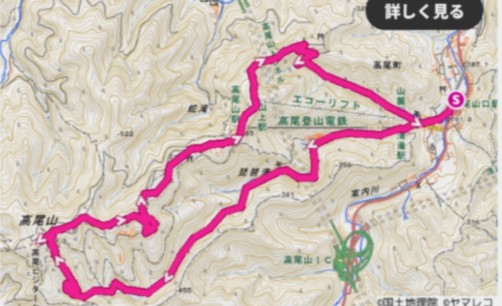 ▼コース : 高尾山口駅 9:45 → 10:02 ケーブル清滝駅 → 10:05二軒茶屋登山口 – 10:15 琵琶滝 – 10:37 硯岩 – 10:59 稲荷山コース高尾林道分岐 → 11:25 高尾山(昼食) – 12:23 高尾山薬王院 – 12:33 神変山(林野庁殉職者慰霊碑) – 12:54リフト山上駅 – 13:07 金毘羅台園地 – 13:31 高尾山清滝駅