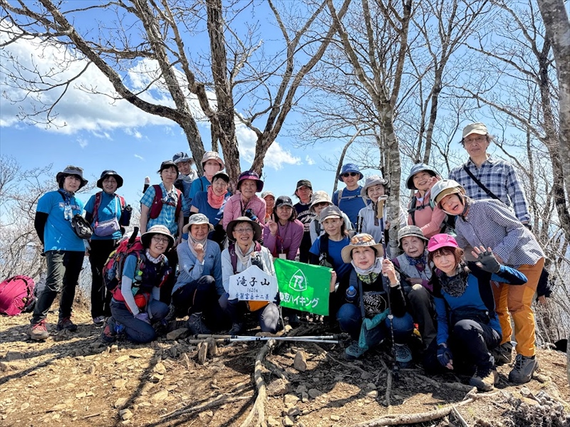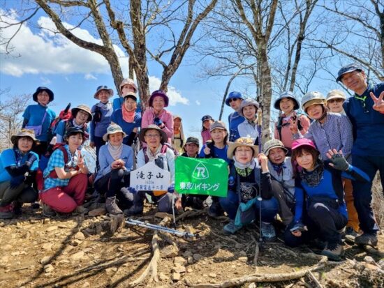 滝子山(南稜)は、昭文社の地図で破線で示され、道不明瞭と記されていますが、赤いペンキの印があるところもあり、慎重に歩けば無事に通過することができます。頂上近くからは雪を被った素晴らしい富士山を眺めながら歩くこともできます。昼食後は、すみ沢に沿って下山するコースを選びましたが、清らかに流れる水の音を聴き、透き通った水が流れる様子を観ながらの道で、途中ではモチガ滝も観れました。岩場、頂上での最高の眺め、春の花、沢の流れと滝など、本日のコースはとても変化のある充実したコースで充分登山を楽しんでいただけたことと思います。今回も参加リーダー、協力者、参加された皆さんの御協力のお蔭で、どなたも怪我することなく無事に山行を終えることができ感謝しています。ありがとうございました。 木村博子