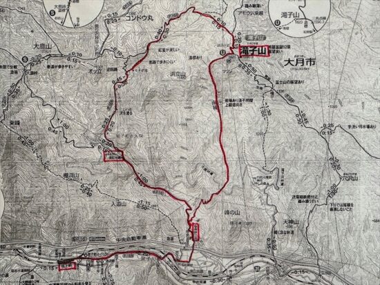 ▼コース : 笹子駅8:45→桜森林公園9:30→南稜取付11:05→滝子山12:50~13:25(昼食休憩)→道証地蔵16:05→桜森林公園16:35→笹子駅17:10解散