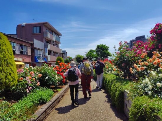 五月晴れの下、満開の薔薇を見ながら気持ち良いウォーキングが出来ました。