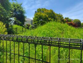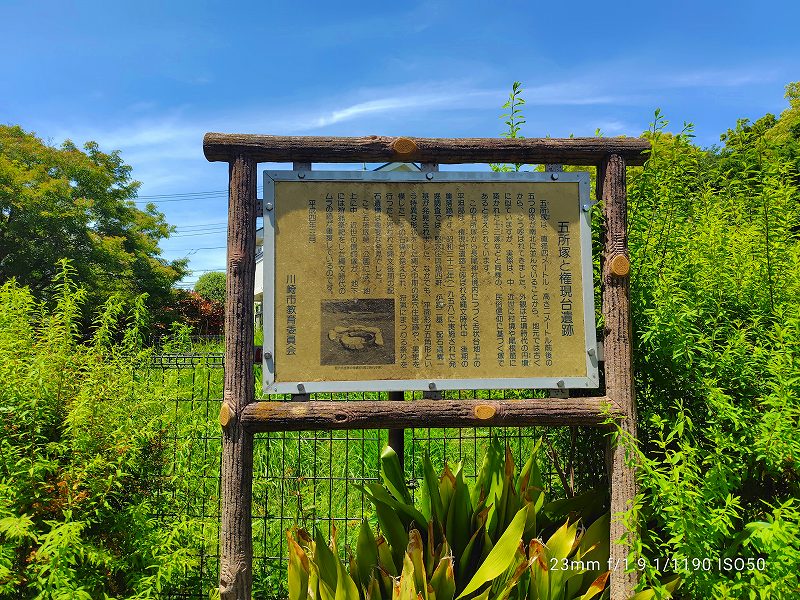 径4m、高さ2m前後のきれいな円墳(塚)5基が南北方向に一列に並んでいる。現地の説明板では、外観は古墳時代の円墳に似ているが、中・近世の信仰塚と考えられるとのことである。