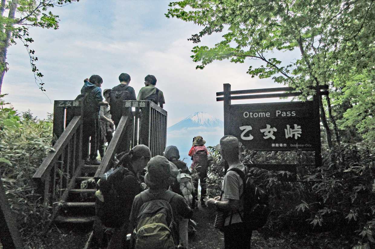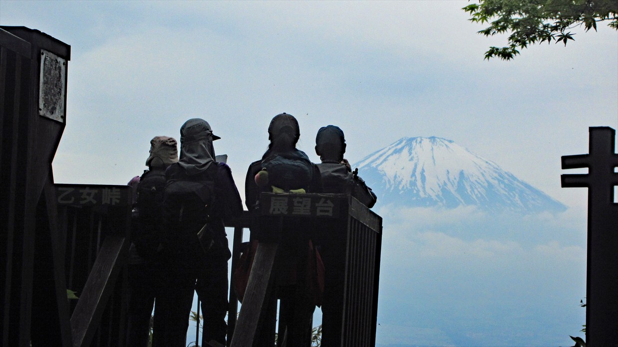 ずっと見えなかった富士山が、乙女峠についたら眼前に現われた。