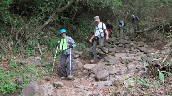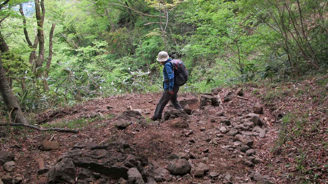 乙女峠から仙石への下山路は岩石がごろごろしていて歩きにくい。