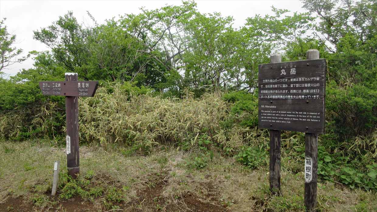 山頂にはNTTの丸岳無線中継塔が設置されているため、箱根カルデラ内や御殿場などの山麓から望んでも一目で丸岳と分かる。ブルーシートがかけられていた。工事中か?