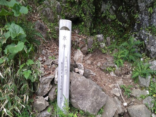 水干(多摩川の源流・東京湾まで138Km表示)に着きました。右奥に最初の一滴がありませんでした。