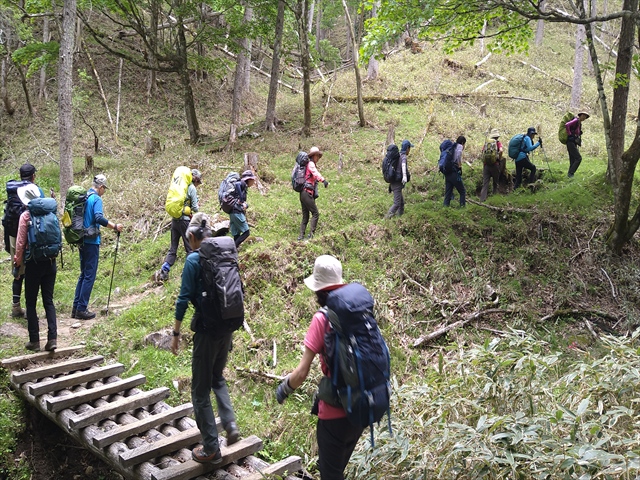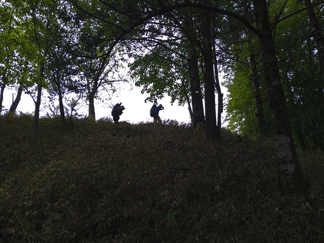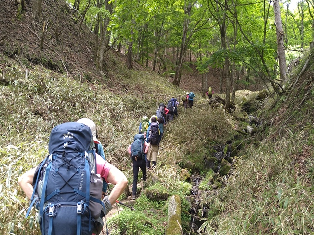 沢に沿って笹の道を登って行きます。沢を流れる涼風が気持ち良いです。
