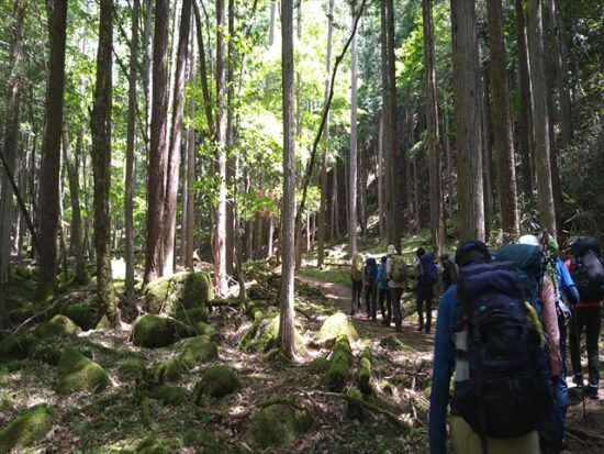 苔むした林道を進みます。セミが賑やかに鳴いて迎えてくれます。