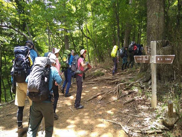 ヤブ沢峠1690mを直進します。左に曲がると作場平に降ります。