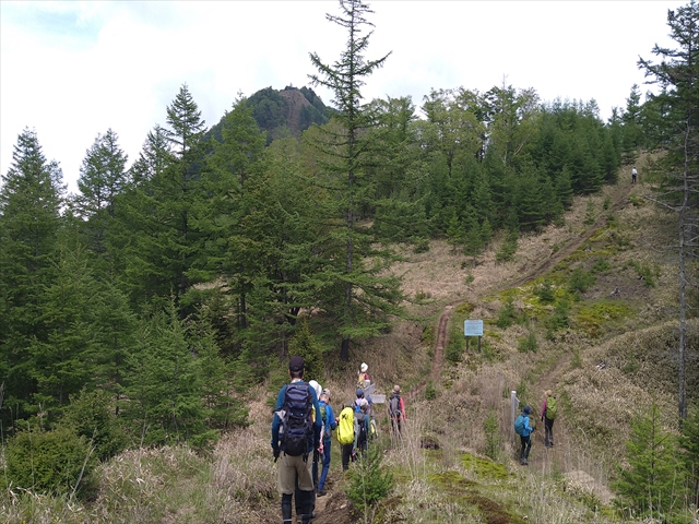 分水嶺から目指す笠取山が見えました。 周回登山路を左回りで登って行きます。
