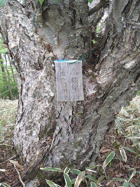 萩尾1700mに着きました。東7mに四等三角点があると表記されています。