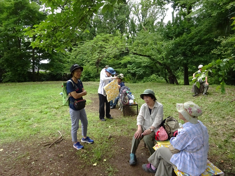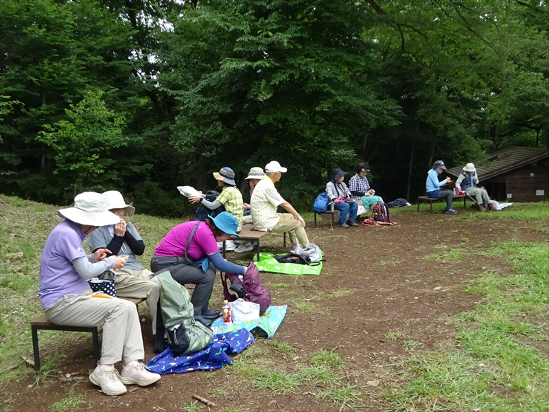 多少蒸し暑さもありましたが、八国山緑地では時折吹く風に涼しさを感じる時もあり、楽しく山行を終える事ができました、参加リーダー・協力者の方々有難う御座いました、参加者の方々お疲れ様でした。