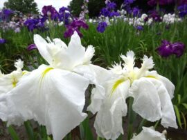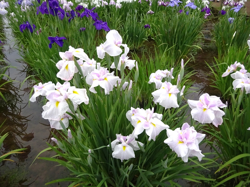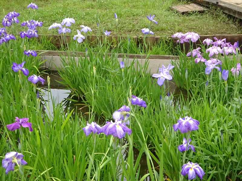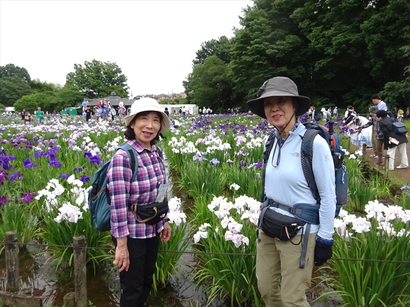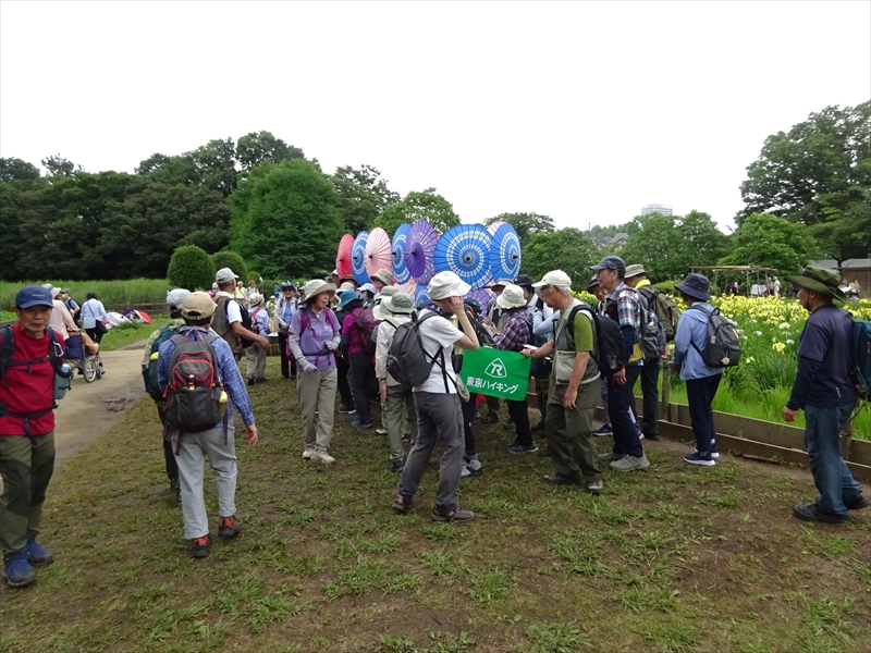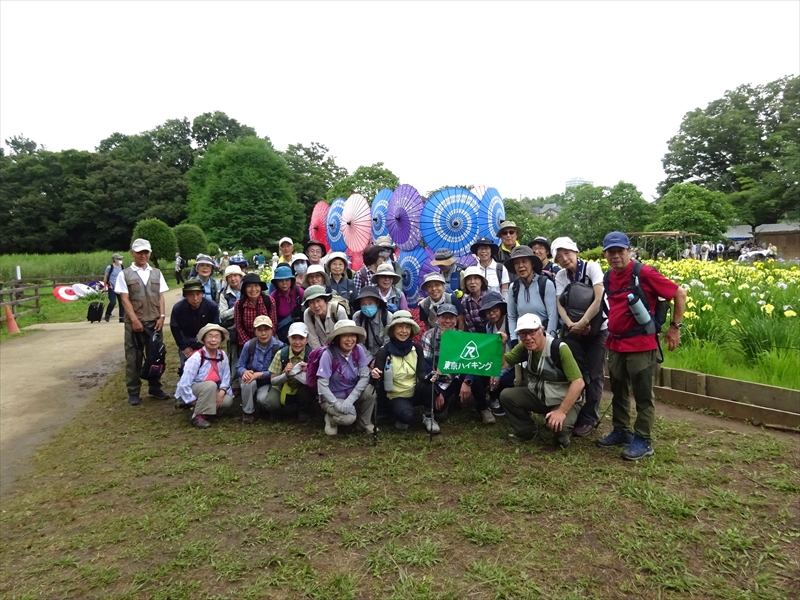 リーダーコメント:北山公園では、菖蒲祭りの開催中で多くの模擬店も出店していて、昨年より数は少ないとの意見もありましたが、紫・白・黄・ピンクなど多くの花菖蒲の咲きっぷりは見事でした。また大善寺でも数はすくなかったでしたが、沢山の種類の紫陽花が色とりどりに咲いていて花菖蒲ともどもに初夏の訪れを告げる風物詩に出会う事が出来ました。