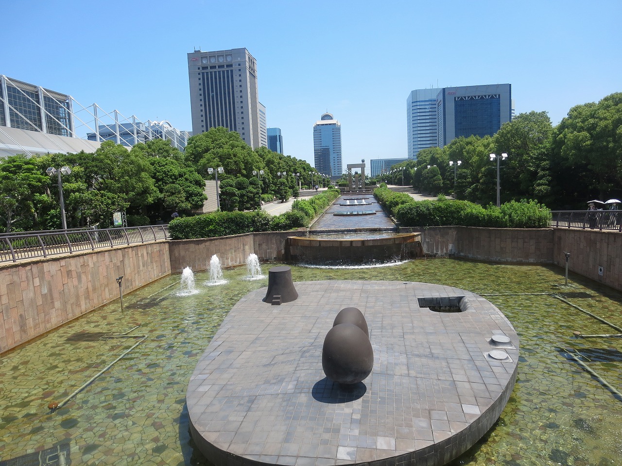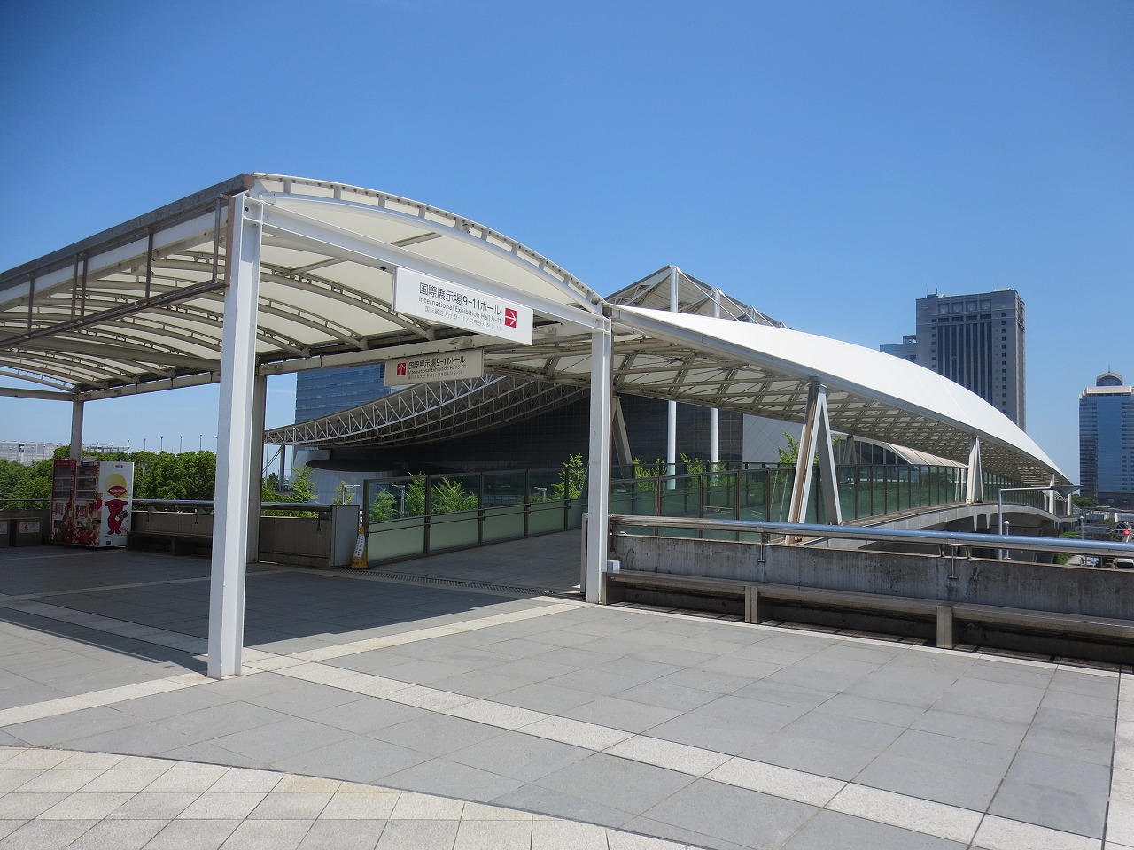 右も奥も「国際展示場」。駅南側の「国際展示場」や北側のビル群は各々デッキ?で結ばれています。