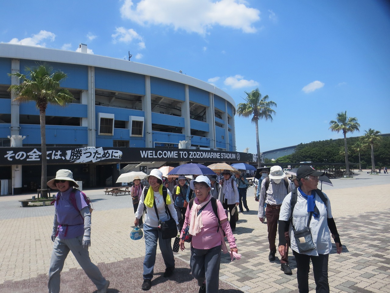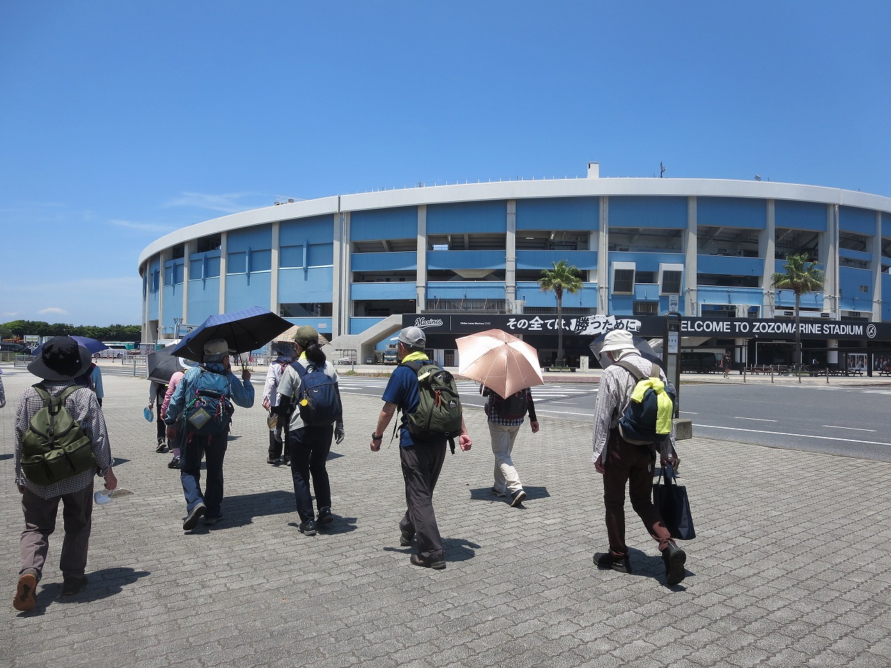 行程:海浜幕張駅→幕張メッセ→ZOZOマリンスタジアム→高円宮記念JFA夢フィールド→幕張の浜→検見川の浜→バス停=稲毛海岸駅