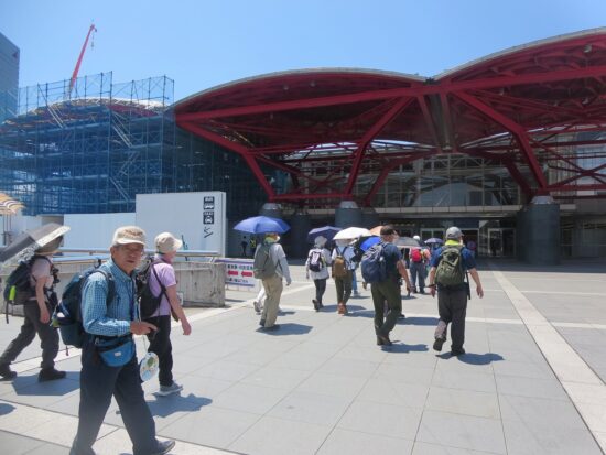 リーダーコメント:係の初山行(2006年6月)が今回と同一のコースでした。20年の歳月が経過しても大きく変化したのは、何も無かった幕張の浜に「JFA夢フィールド」ができたくらいで(大きな変化です)、幕張メッセの巨大な建築物や幕張の浜や検見川の浜に打ち寄せる波は当時と変わらずひたひたと寄せていました。が、大きく変化したのは我々人間かもしれませんね。しかし、熱中症警戒アラートが出そうな暑い中にご参加いただいた皆様の元気さは、まだまだ小さな変化を保っていると言えるかもしれません。
