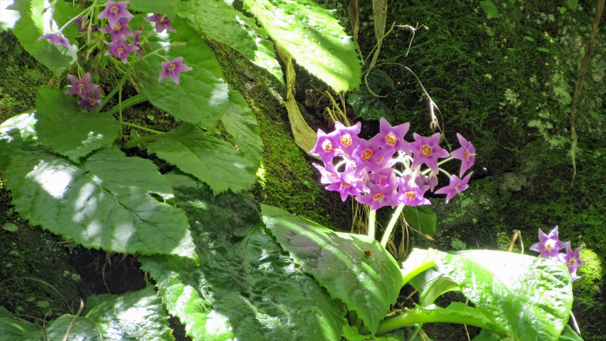 イワタバコの花が切通しの周辺で咲いていた。、福島県以西〜九州のいつも水がにじみ出ているような日陰の岩場に生える。