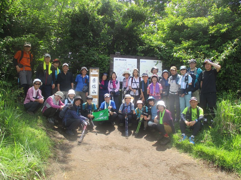 景信山山頂:標高727,3m集合写真(強い日差しの中)