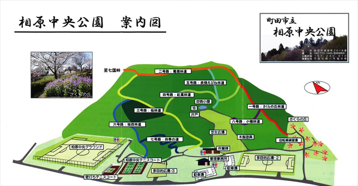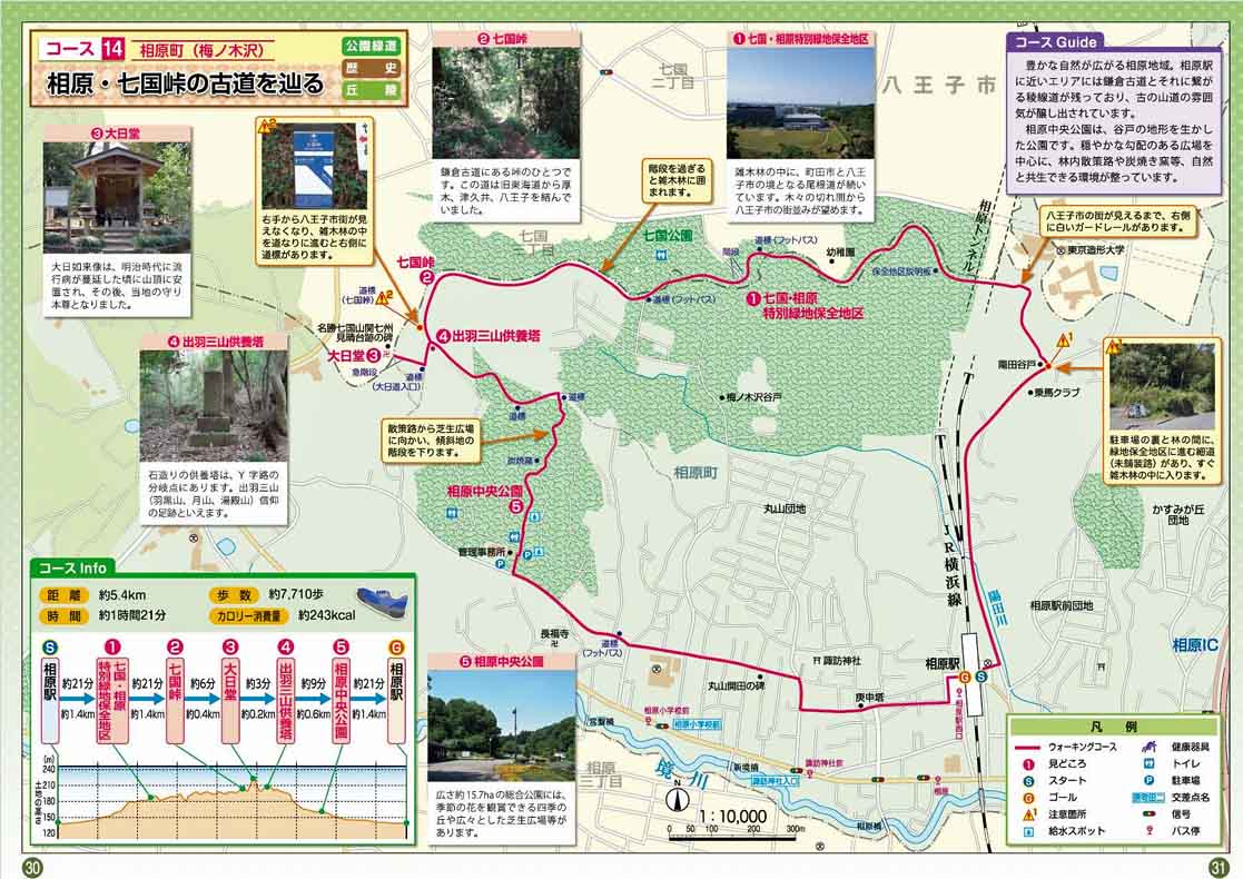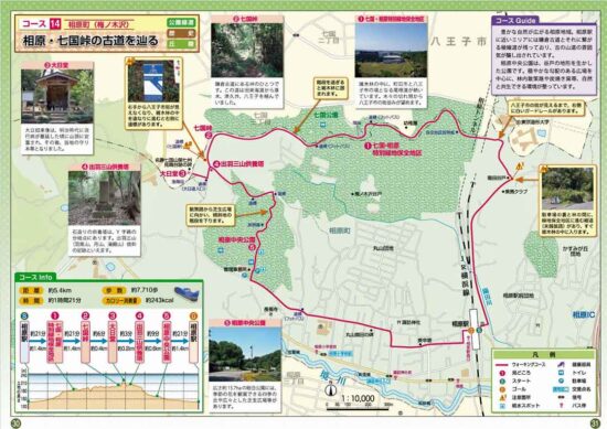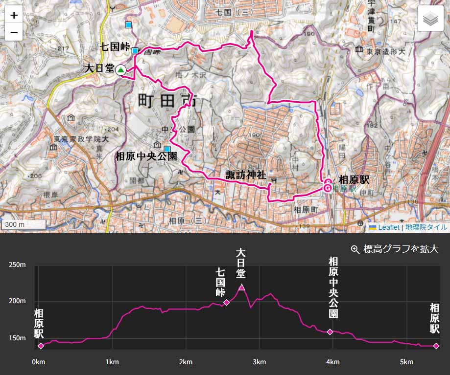 JR横浜線相原駅9:44→10:53七国峠10:57→11:02大日堂11:12→11:35相原中央公園(昼食)12:25→12:41諏訪神社12:51→12:59相原駅