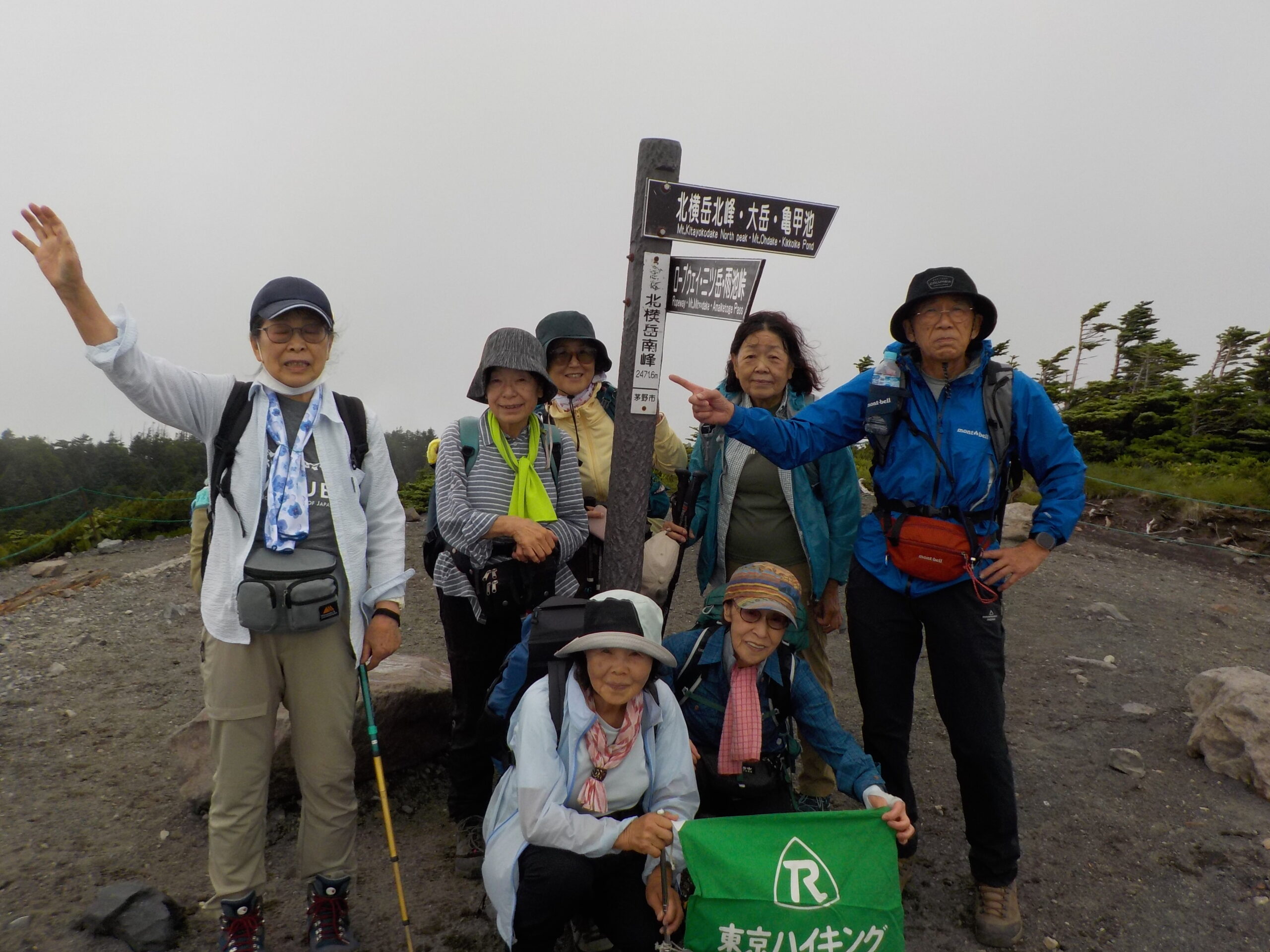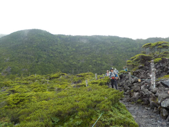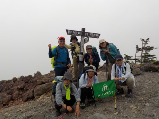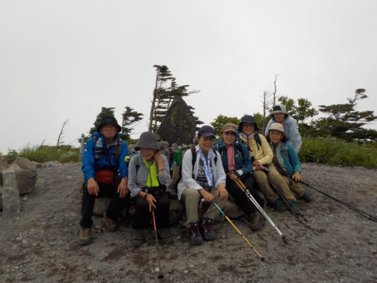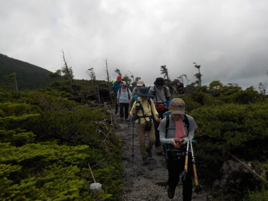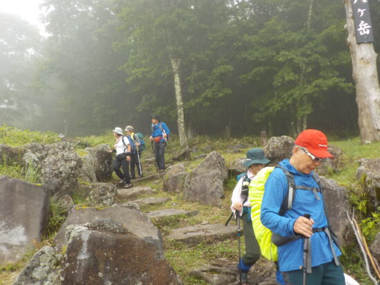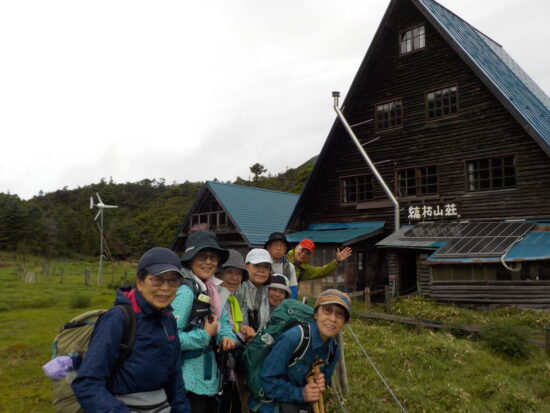 出発前から 天気が心配されたが 濃霧で視界が良く無い程度で 翌日の下山まで 雨に降られる事もなく 皆さんの心掛けが良いせいですね。 和気あいあいで 明るい皆さんですねと宿の方も笑ってました。猛暑の都会から 寒い位の山小屋で 暫し猛夏が忘れられての ひと時でした。 大倉 記