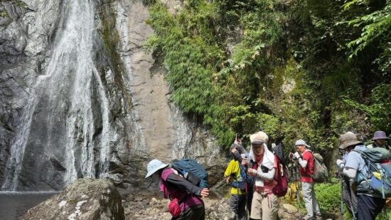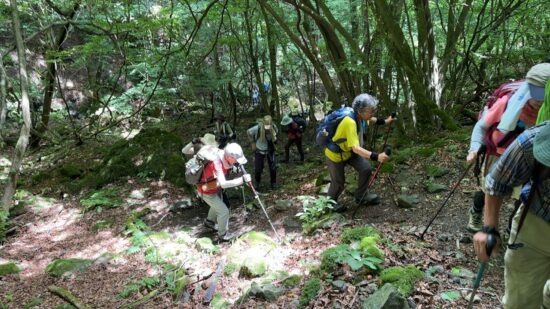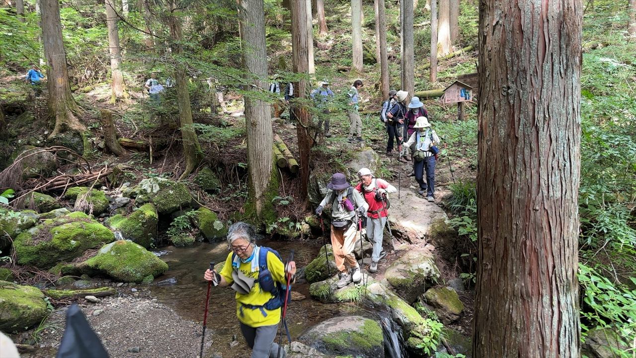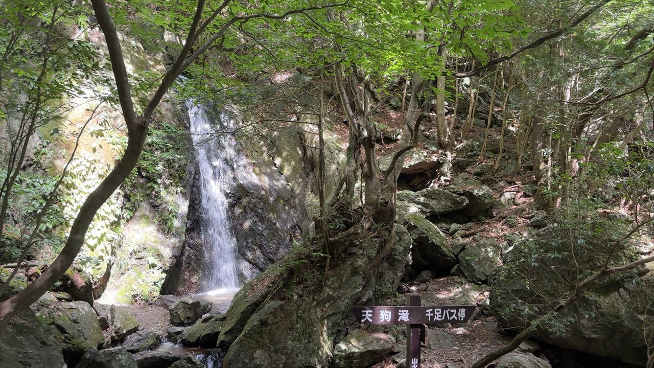 「富士見台」で昼食をとった後はつづら岩の先の「千足分岐」から下山しましたが、しばらくは急な下りだったので慎重に下山し、「綾滝」、「天狗滝」で休憩して、「小天狗滝」を横目で見ながら下山しました。