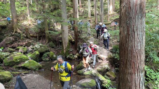 この一週間は比較的涼しい日が続きましたが、今日は少し暑さが戻っていまして「大滝分岐」の尾根に出るまでは、日は差し込まないが風が吹き込みにくい沢沿いを登るコースだったので、結構暑さを感じながら登りました。しかし、途中途中にある渡渉と木の橋を何回か渡ったので、沢の涼しさも感じられたかなと思います。