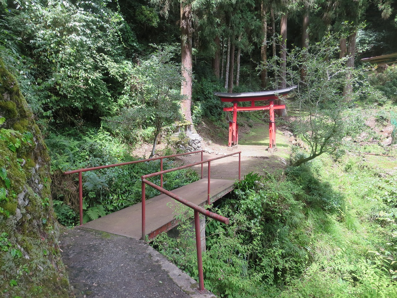 「静之神社」しずのじんじゃ。鳥居の奥に岩盤に立つ神社があるようです。