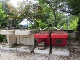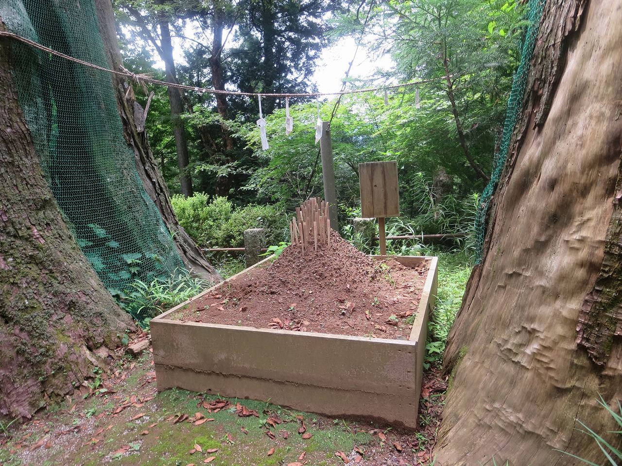 二本杉の間に写真の様な箱が。何かを育てているようです。ニ本杉の子供を育てているのでしょうか?