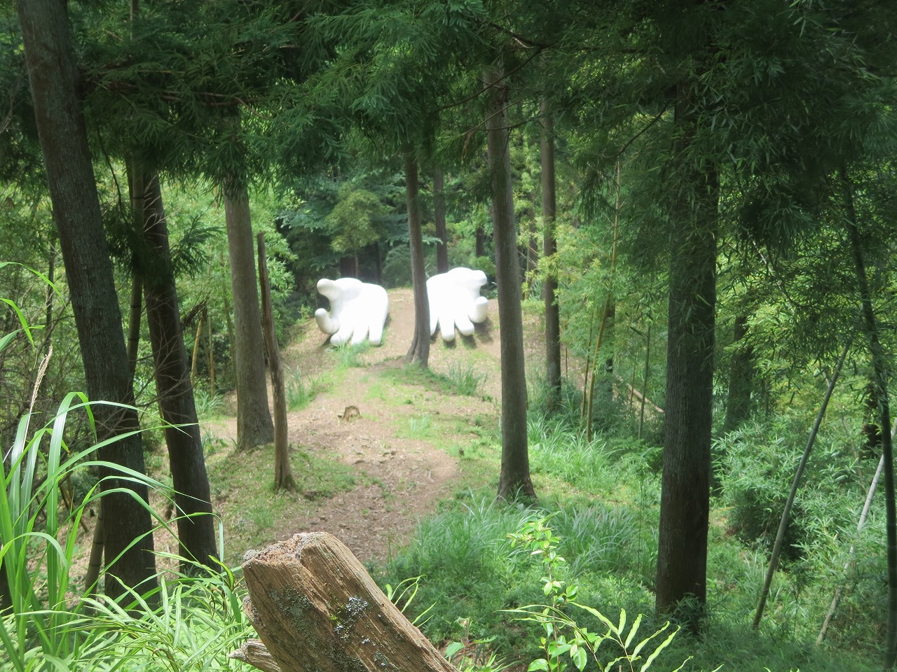 わらじ の横に めおと下駄。 階段を下りて行くと左右の手 芸術品?